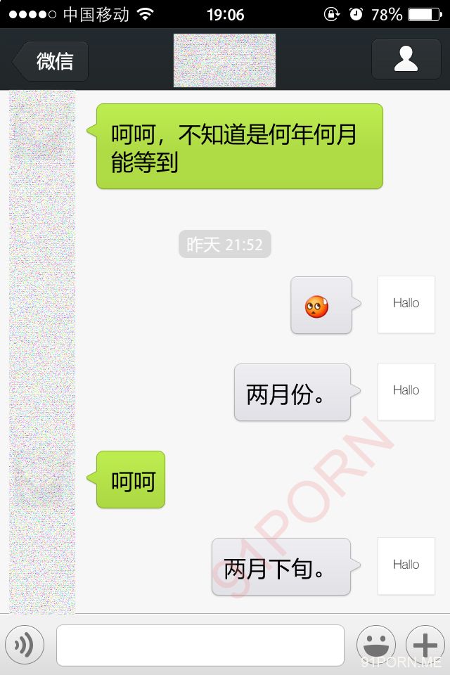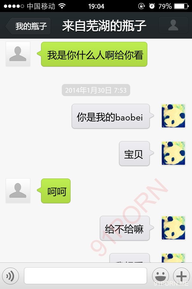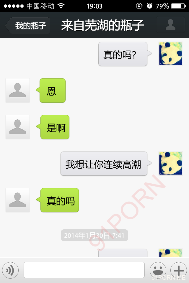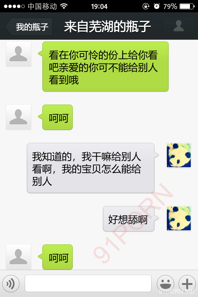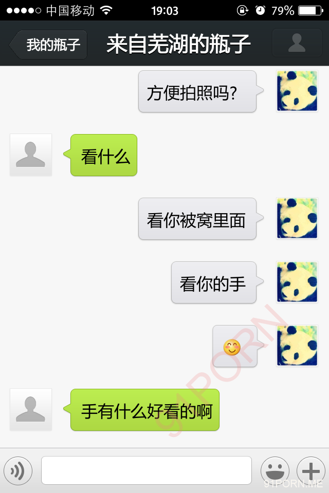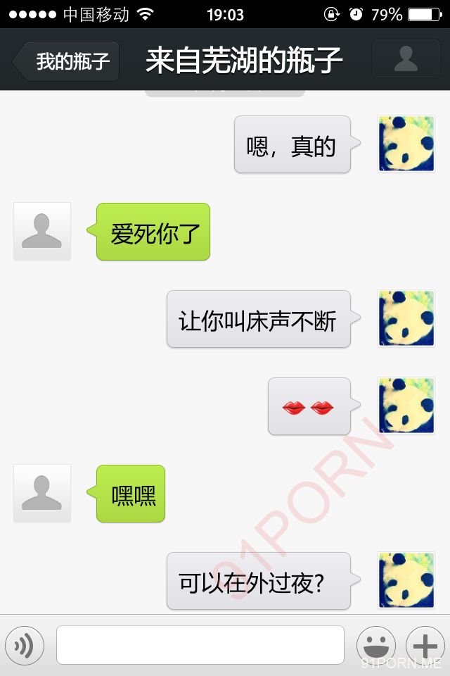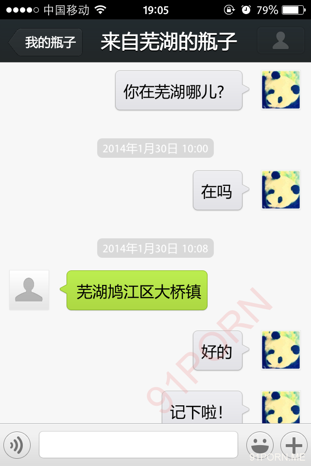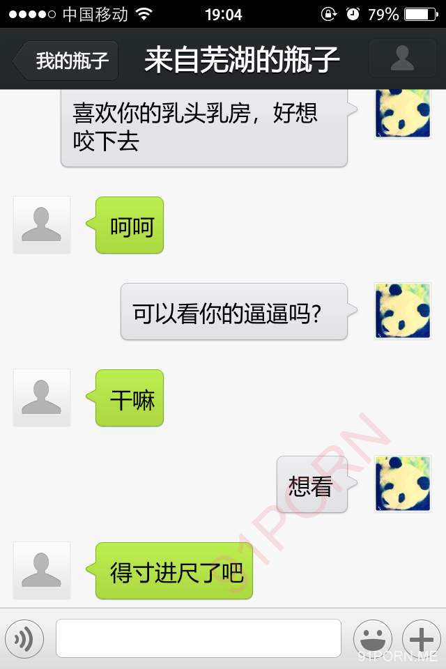 前几天早上很早醒了,无聊,捞了几个瓶子,和一个26岁的良家聊天,小孩已经4、5岁了吧,后面经不住楼主的语言、文字挑逗,被我弄的招架不住了,很期待的让楼主过去艹她,说实在的,有点远,心有余而力不足。下面是对话,可能有点乱,将就着看吧!露脸的我都打马赛克了,隐私还是要保护的。