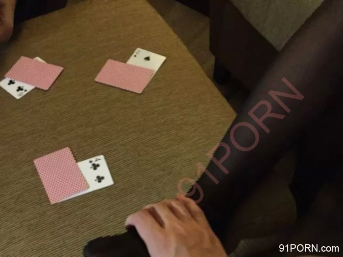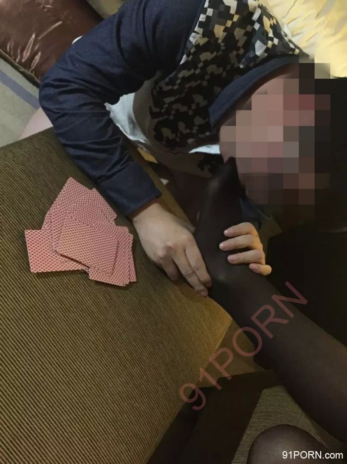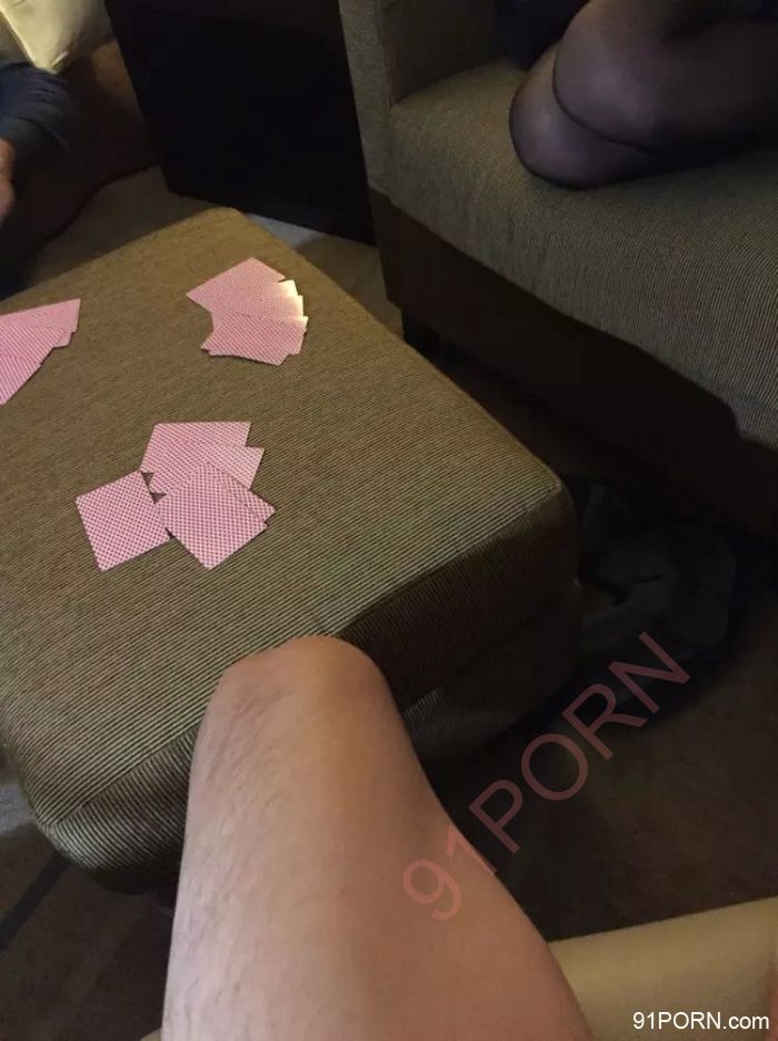 让女友坐在他腿上,单男的手也没闲着。。边打牌,边丝袜腿