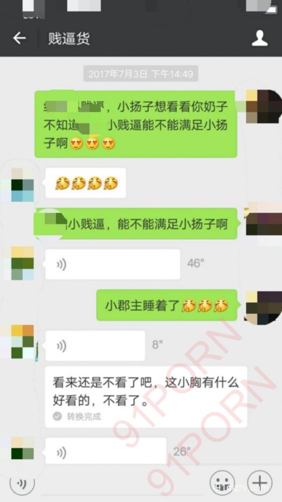 剧透,奴才要看奶子,第一次自拍奶子给陌生人,第一次拍逼照给陌生人,第一张照片是现在截图,防止有人认出来,头像打马赛克,是奴才老公要看,我发的语音说看奶子啊,还是不看了吧,但是还是忍不住发了第二第三张照片,所有头像都是之前自己的本人头像照片,所以后面会打马赛克