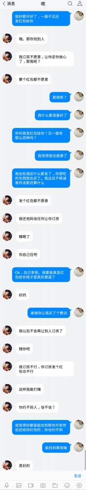 她也加过我,前面聊说是在广州打工,聊着聊着第二天叫我发个红包给她教补考费。打工还考什么鸡巴直接拉黑…