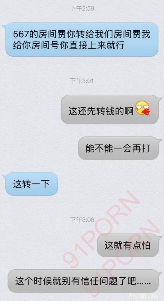 约好了一个不远的酒店,他说他过去先把房开好,我就出发过去了,一路上还一直给我发他们出发的视频和到了酒店的热身玩的视频,结果折腾半天到了酒店门口,他告诉我先把房费打给他才告诉我房号,我认为不合理和他讲,结果后面就不回复了