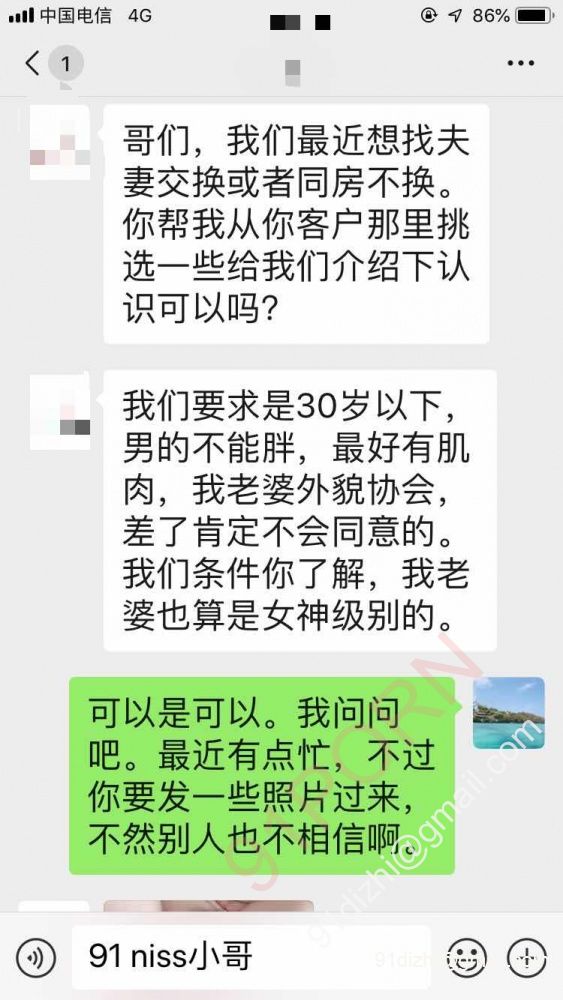 这一对夫妻是我给服务过的,入圈时间不长,小资,有固定工作,老婆属于女神级别。生活照因为工作原因不方便发。委托我帮他们找一些同龄的夫妻活动。
