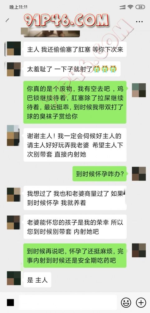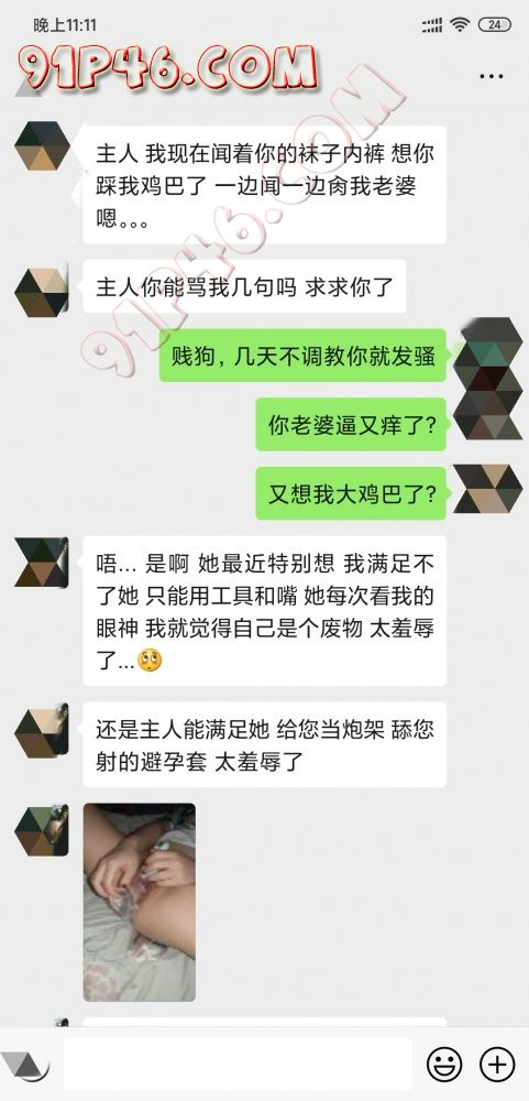 闲来无事看手机,突然看到绿王八给我发微信发骚,邀请我过几天去他家住,想让我艹她老婆,母狗也是满足不了天天没给他好脸色,刚好也碰上母狗有假期,所以催着绿王八给我发微信,没想到绿王八发了母狗自慰的照片给我看。这还不够,鸡巴锁的照片也发给我了,上次调教完让他带锁,钥匙给了他老婆,看来他老婆快完全沦为我的狗了,只听我的话了,钥匙也不给他了,哈哈哈,没想到他自己还带了肛塞和项圈跑到厕所给我拍了下,真的有够贱,晚上没事发出来让大家看看,等有空去他家住几天再调教一下