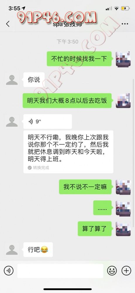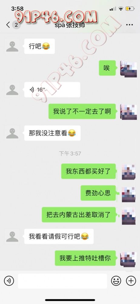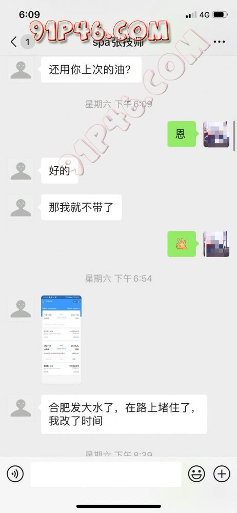 真的是忐忑的一天 计划了一个多月的活动今天终于如约而至的到来 (当然我们也不是第一次找这位技师小哥了,上个月找过他给老婆全身推过油 ),原先定好的计划小哥跟我说请不到假我还以为泡汤了,没想到最后请到假了,直接坐高铁赶来,下面直接上聊天记录吧