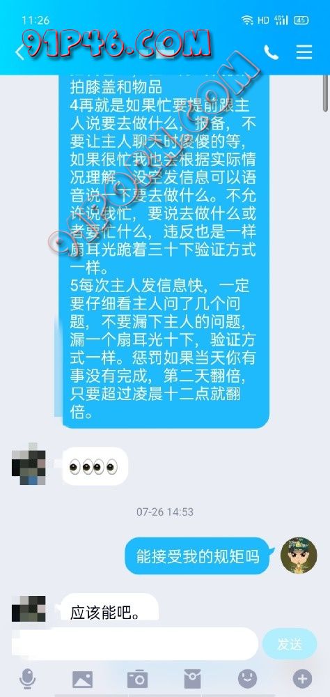 3.加我标注91,交友目的,最好主动介绍自己,不标注91不主动介绍加友目的的不会通过,要懂sm调教,DOM女的思维,不懂sm的不要加了,不交流,不收徒弟,不外传买卖视频照片,母狗露脸这是信任,不可能买卖,合格的主人必须保证对方的隐私安全,霸主不玩普通的调情。