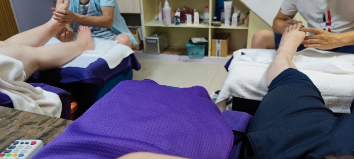 我就带我老婆短裙丁字裤去洗脚,找的男技师。