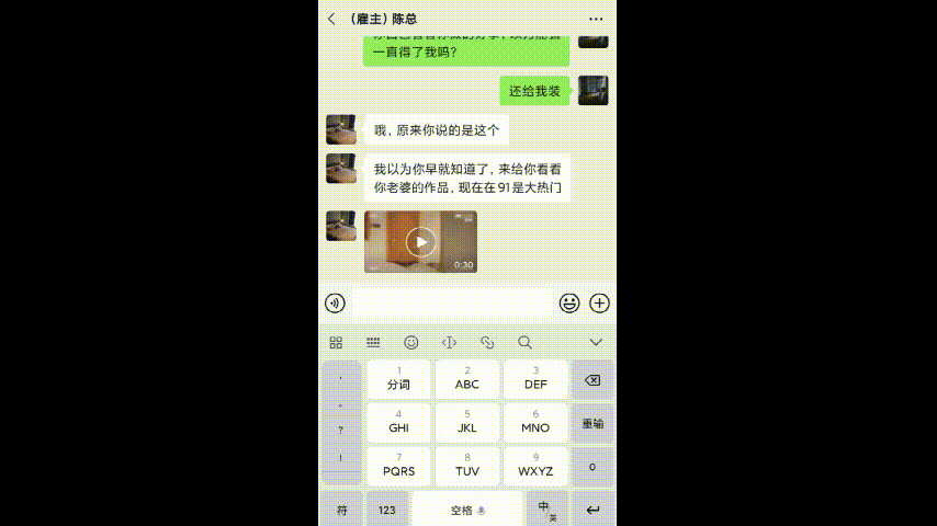 谁知道陈总直接轻松地回复阿伟,并且把一段视频发给了阿伟,阿伟点开了视频