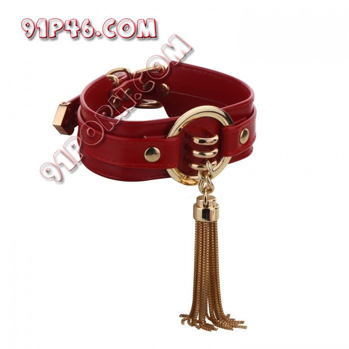 脖子上戴着白色皮质SM项圈,买一条稍微精致一点的狗链挂在项圈上,戴着一对稍微质地好一些的白色皮质SM镣铐、互相锁止。