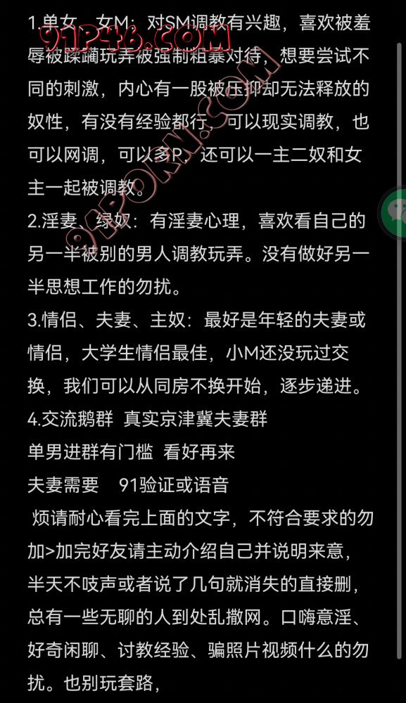 烦请耐心看完上面的文字,不符合要求的勿加>加完好友请主动介绍自己并说明来意,半天不吱声或者说了几句就消失的直接删,总有一些无聊的人到处乱撒网。口嗨意淫、好奇闲聊、讨教经验、骗照片视频什么的勿扰。企鹅:[email protected]@[email protected]@736 请备注来意