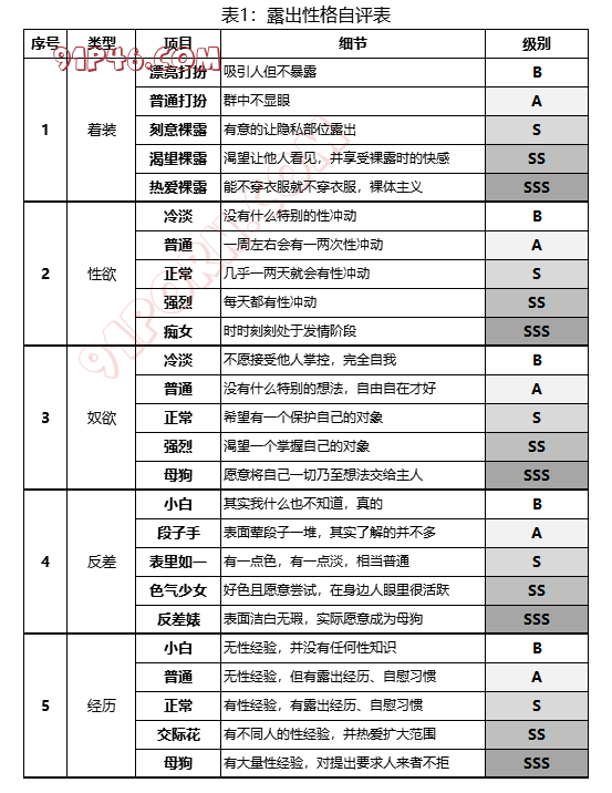 大家有时候总会想着淫妻啊调教啊什么的,不能只是自己在那意淫,忽略了爱人的想法。奉上两份性格自评表,可以给爱人打打分,彼此加深一下了解。