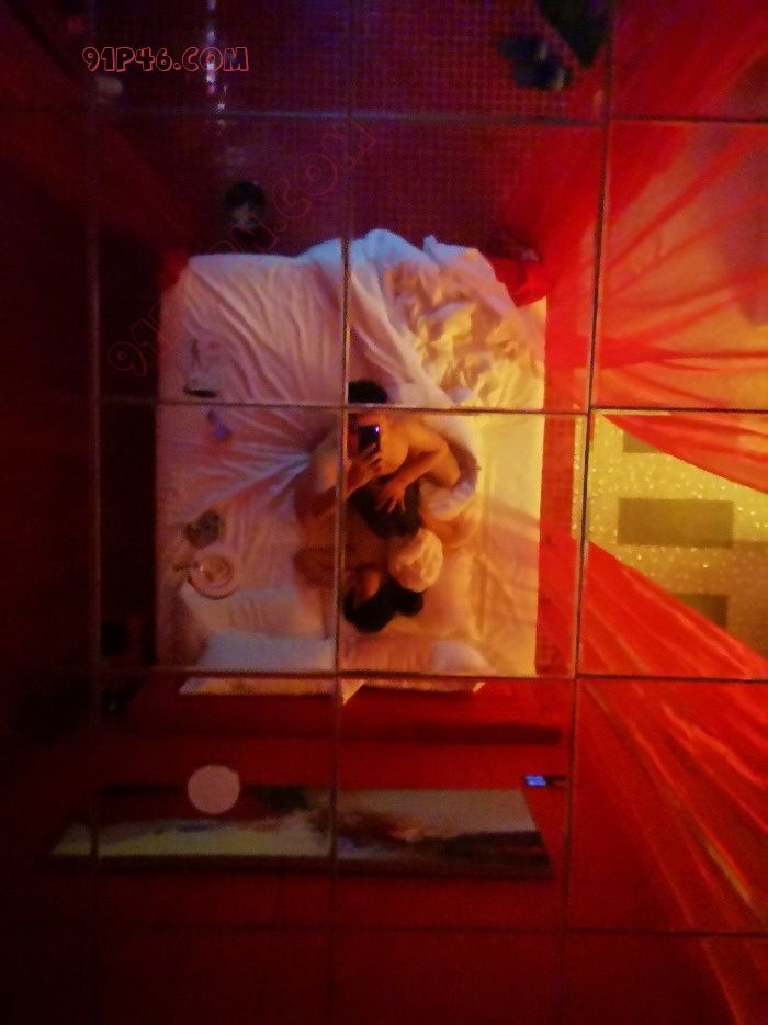 开好房,躺下看到顶上居然是镜子,果然情趣酒店花样就是多,趁骚货舔的时候拍一张