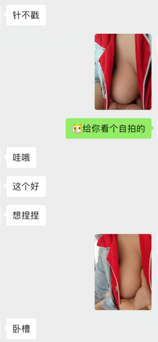 非常好的朋友人也靠谱,突然想玩点刺激的就把刚拍的照片发给他了,然后边发边硬着看似平静的聊天,毕竟开始避免尴尬没漏点,但内心是想把老婆掰穴的骚照都让他看到,最后还是岔开话题了,对话截图,求淫7同好有更刺激的玩法分享一下