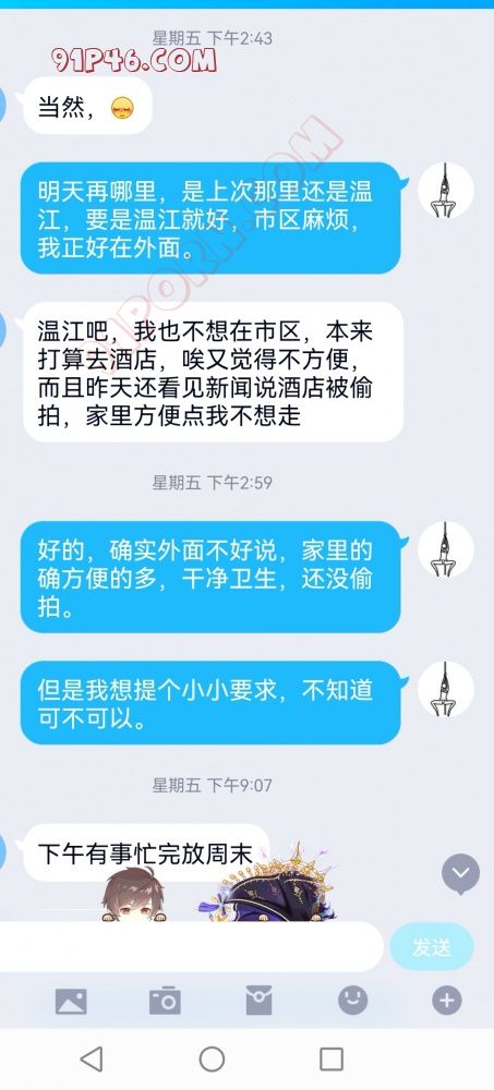 对于夫妻、单女,因为每个人都有自己的要求,或是颜值、或是观点,或是其他,大家都是有自己要求,这个尊重理解,如果加了qq,半天不说话,我也不好删除,万一哪天又聊了呢,因为我也有被删除的经历,所以我能体会那种感觉,一般不会删除。所以请大家想好后交流,这样也不耽搁双方时间经力,要做到有效沟通。总之我觉得交流的基础是认可、尊重、理解,这是第一步。第一步都没说好,也就没有下文。所以最最重要的是尊重、健康、安全卫生,也包括隐私安全。佛系交友q伞腰期期伍泗把伍伞腰。