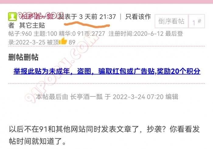 回复 18# 神仙叔叔 楼主说2048的那个也是他,今晚去2048对一下暗号 就知道了,如果是楼主 小弟在这里给他道歉;我不是抬杠和喷子,假设同一个人发的帖子,同一文章 内容和照片(91这里没有发布)很大出入,谁是李逵 李鬼 一对比就立分高下,您可以去2048看一下,文章的发帖时间和完整性,一对比就找到了,91我从初中开始看了,那个时候还不用翻墙,论坛的大神 也看到了好多,好多都是发来一些作品然后 再也没有更新了,喷子和杆精(每个论坛也有)