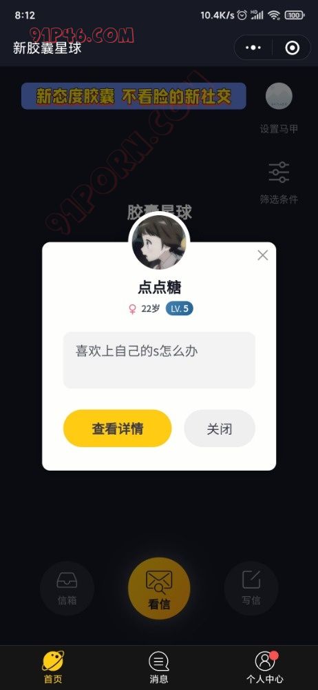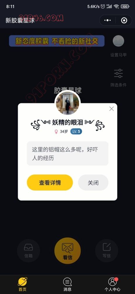 首先我没有打广告,去年都在91看到过其他老哥说这个wx小程序,字母圈的人确实多。识别登录以后点击看信,选择圈子。看不了就退出过一会再进去。你们好好研究研究怎么玩 .