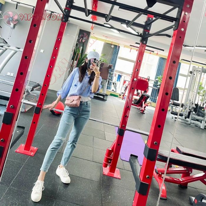 一位健身房的长腿辣妈