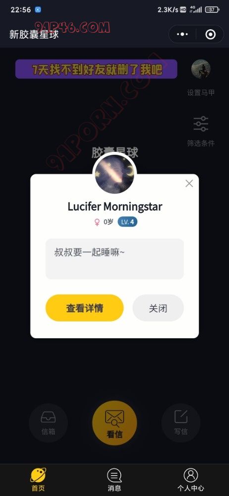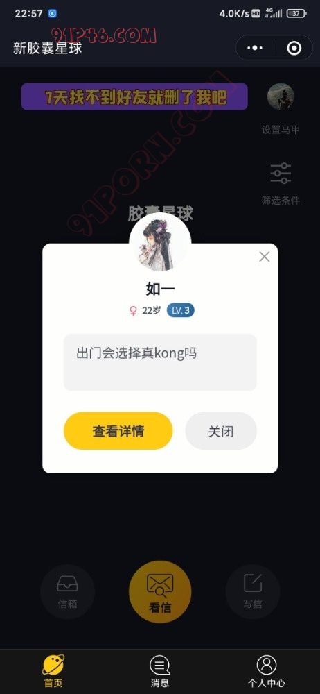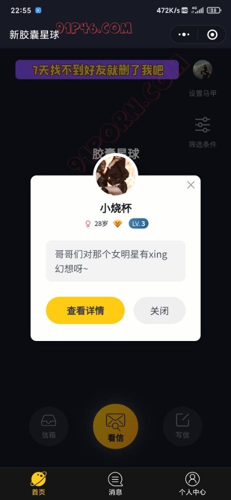 首先我不是打广告,去年都有老哥再说着这个wx小程序了,这里面狗狗多啊。两性集结地,如果看不不了信,等几分钟再进去。