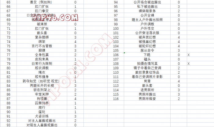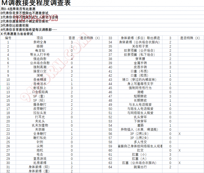 调教是一件很需要耐心的事,特别是在初期。关于羞耻心的调教,我开始要求每次做之前和做完后都得用嘴来服务一下,有一次把她送到高潮之后,我说今天射嘴里,顺便也把鸡巴舔了,还没等她说话便抽出来带着一鸡巴的白浆分泌物直接插进她的嘴里,当时怕她反抗,还想用手固定她的头,结果她径直用舌头绕着龟头舔了起来,几秒钟都没坚持到,直接喷发,这事以前在不同女的嘴里都搞过,但是想着她才开苞不久,照顾情绪为主,还是说了句:要不要去厕所?但肯定不能问她要不要吐出来,否则就变成了引导她吐掉。结果她口齿清晰的说不用了,我大惊:你吞下去了?她说:是啊,AV里不都是这样吗?我愣了一秒,联想到之前开苞骂她骚逼的不反抗,口爆后主动吞精,这服从性。社交直觉告诉我,这她妈的骚逼是个标准M体质!以前经历过的女的,也有喜欢性爱的,但是都是相对平等的相处,这个不一样,是可以调教成母狗的贱货。事毕,在聊天中我开始下意识往SM引导话题,并且和她商量着买了个SM18件套。有天聊到电影,我又故意提到五十度灰,里面男主有一幕让女主做了厚厚的一本M接受程度测试题,我说:干脆你也做一套吧。随即拿出之前偷偷在网上找到的一套题,虽然不如电影里面那套那么多那么详细,但是看到做的答案之后,让我露出弯的嘴角。后来我们谈到这个问题时她坦诚在她小时候偷偷看到过她爹DVD里面的A片,就是SM夹乳,捆绑,吊着放置,我问她看到这些什么感觉?会兴奋吗?然而并没有,她说太小不懂,只是在想这样不痛吗?先贤的智慧真是都有总结,她喜不喜欢你不重要,一旦对你感兴趣,那她就开始沦陷了,这不仅针对人,对事对物都一样。话说回来这算啥?被先启蒙了我捡了个甜头吗?