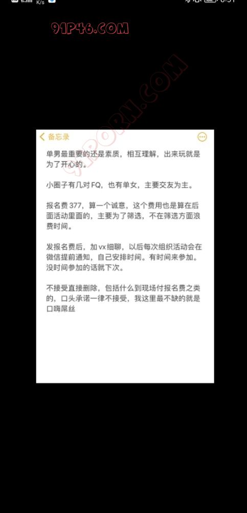 注意这个骗子,之前就遇到过一次,标题0951什么长腿人妻什么的,加了以后不聊要求不聊喜好,直接让你加他交费参加活动。过了段时间现在又换了个id继续这一套。出来玩的夫妻见得多了,人家都是聊聊性趣,谈的来才考虑玩不玩。这种骗子倒好,只要交钱就能玩?呵呵,人家夫妻都是来这找乐趣的,你这是来找生意的? .