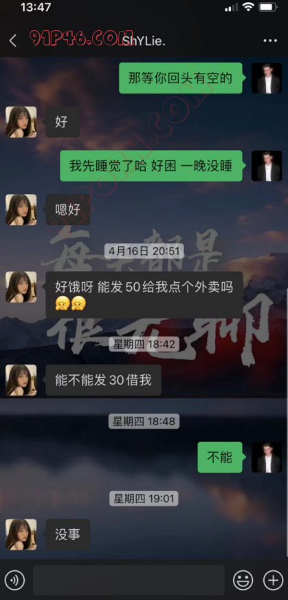 还有这种刚加上的妹子聊的并不多,只是提出过一次邀约后面就没怎么聊天了,突然找我借钱,我都是直接拒绝。