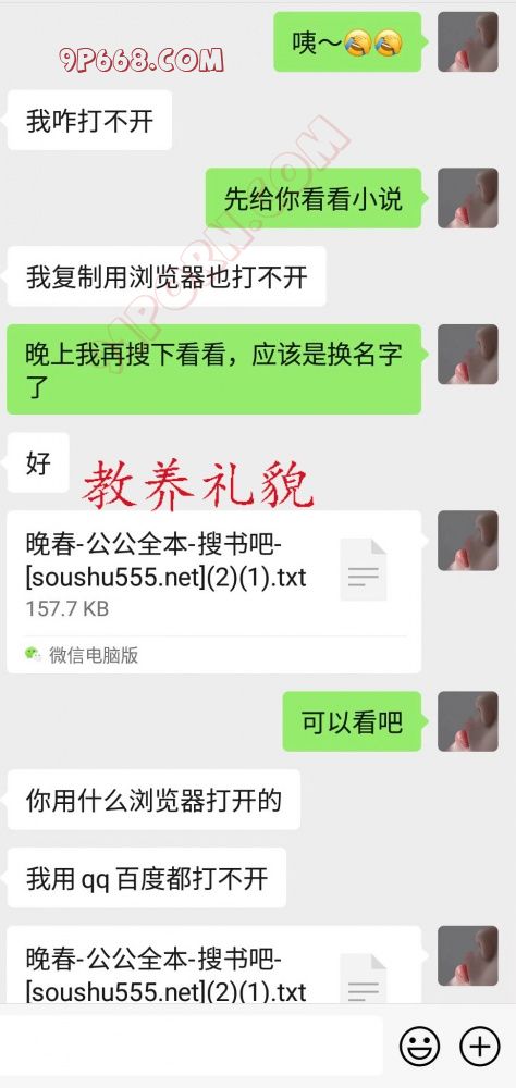 9月份开学到国庆一个多月时间没有做过爱,只能通过磨腿高潮止痒,因为在群里的一次开车,问我要网站和其他色情阅读内容,由此便开始了接下来的聊天记录。