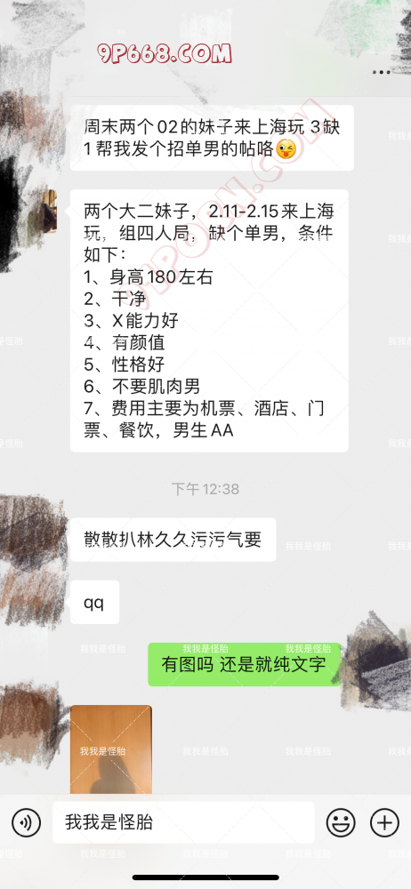 两个02年大二妹子来上海玩,组四人局现三缺一,找个合适单男,有条件要求(本来已经在微信上联系好了,没想到是个鸽子,但我知道91嘴炮更多,但我还是抱着不大的希望,希望能找到合适的狼友一起,大家给力点)