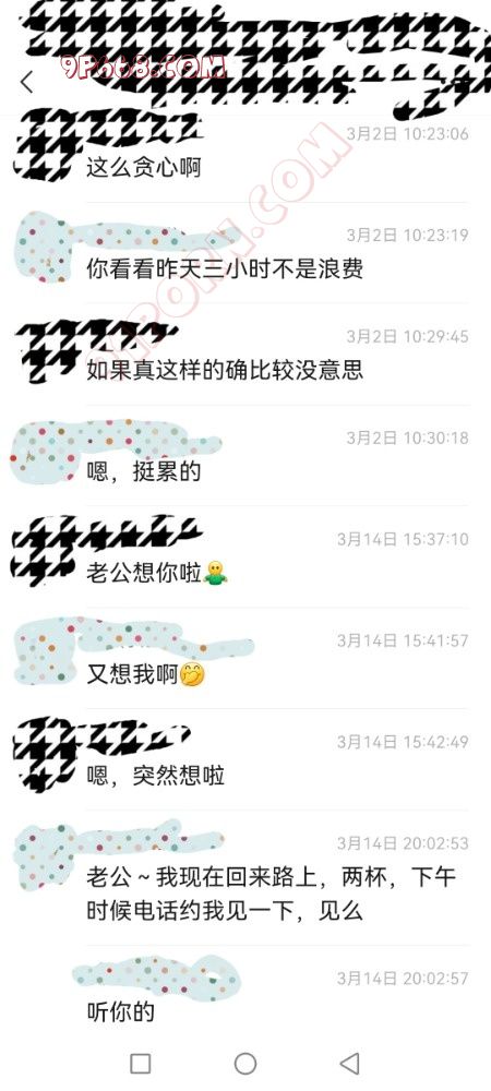 没办法,因为太爱她,只能妥协包容,转而听她讲述经过后异常刺激兴奋,竟然半真半试探性的鼓励她第二天再去约,然后就大概有了接下来的下面这些聊天记录