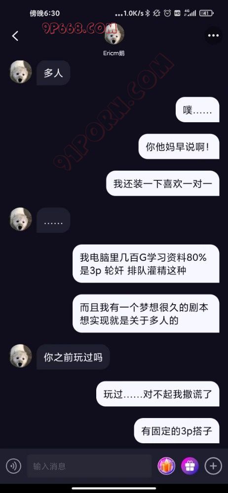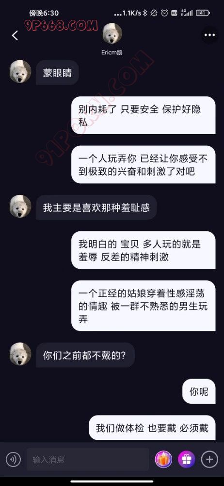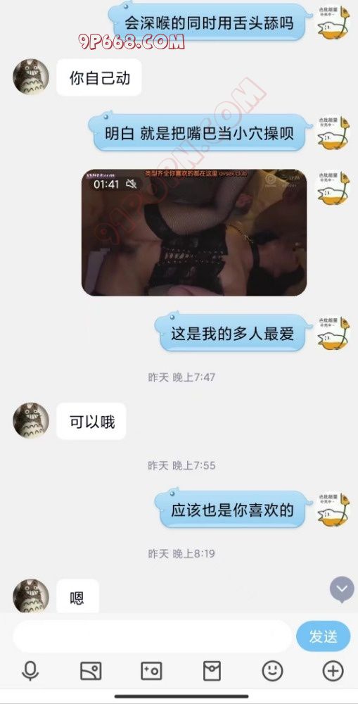 本帖女主是一周前在SM软件认识,一开始极限拉扯,女人永远都是心通往她的阴道。几天拿下,开始对我吐露自己的性癖。以前有过一个主,被带着和他的发小们经常玩群P,有时一周2次,服用长期避孕药,喜欢被集体灌精。现在主走了,小骚货几个月没被轮忍不住找到了我。于是有了以下聊天记录(做爱部分是第一帖的情趣店女主):