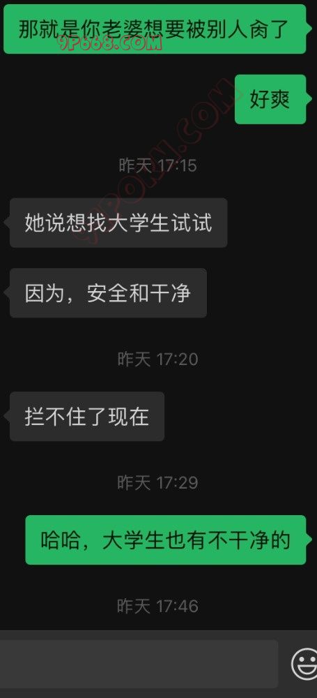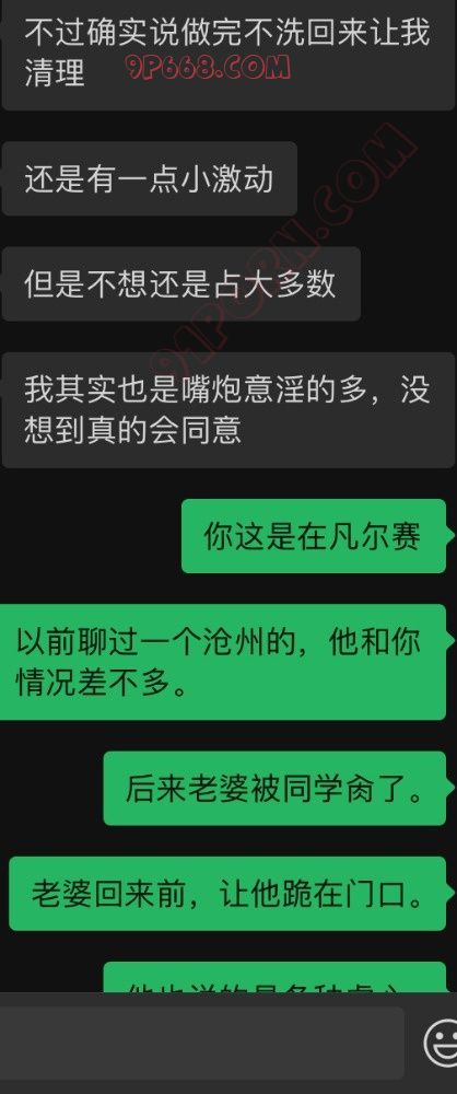 下面是和一个绿奴兄弟的聊天记录,加他好友四五年了,一直想做绿奴,奈何老婆一直不同意。这段时间他老婆蠢蠢欲动,他缺想退缩了。命运的齿轮开始转动剧情翻转。有过经验的可以说一下。企鹅3157432147