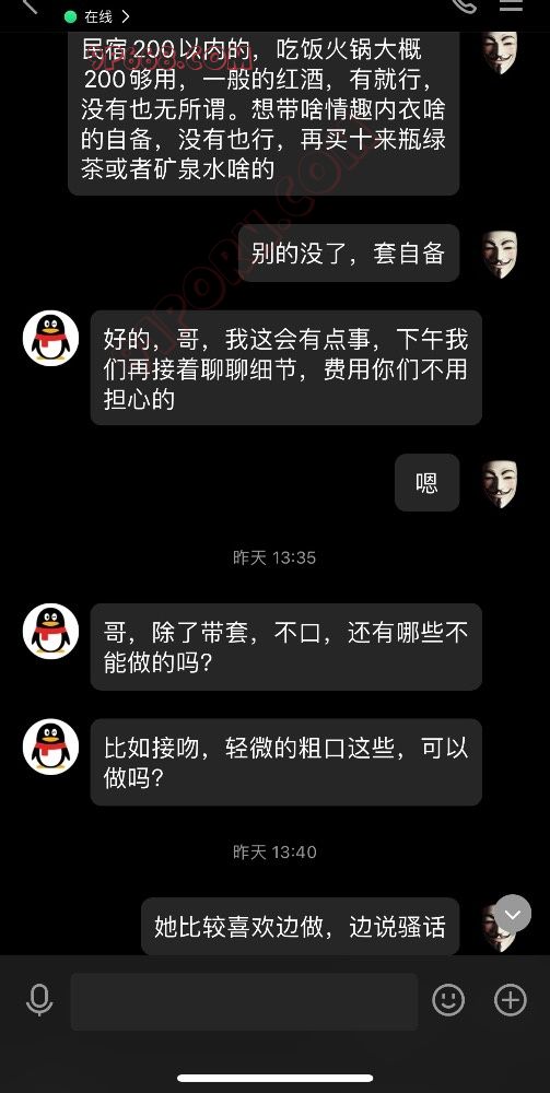 楼主展示的素质单男聊天方式确实很有科研人员的素养,上来先把自己的情况用一段话整体详细进行介绍,随后在发照片之前先确认好夫妻是否方便看照片。在交流过程中,时间地点、自己的形成安排等信息传达的非常准确。