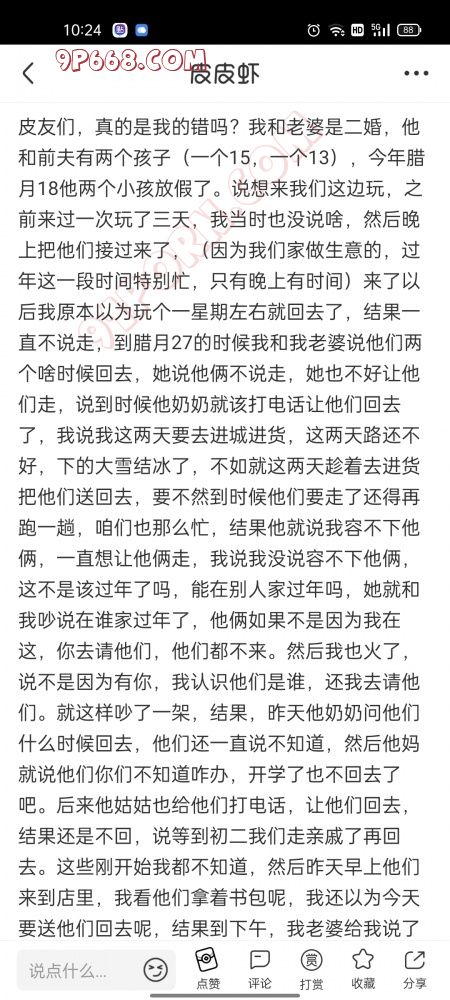 从来就没说过他们,只是想的是过年了,让他们回家过年。而我老婆又说他们俩两年没跟着她过年了,就想跟着她过个年。哎,这两天吵的不可开交