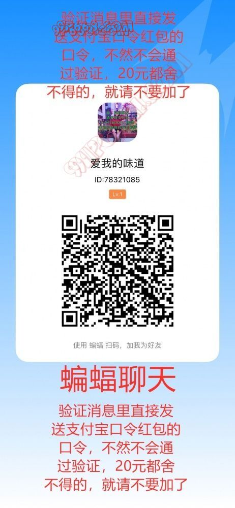 接视频1V1!不线下!扫码添加本人蝙蝠聊天号!