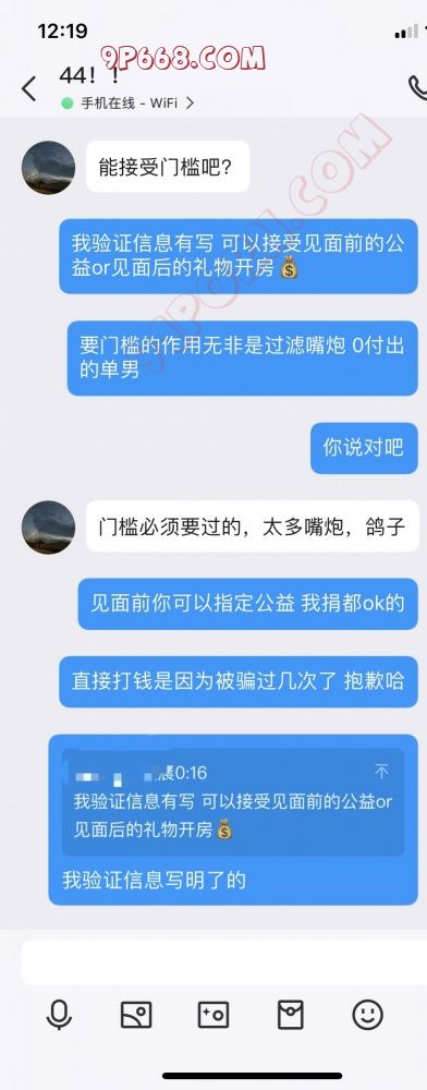 门槛大部分是骗子 反正我是不接受 宁愿同城出来坐坐