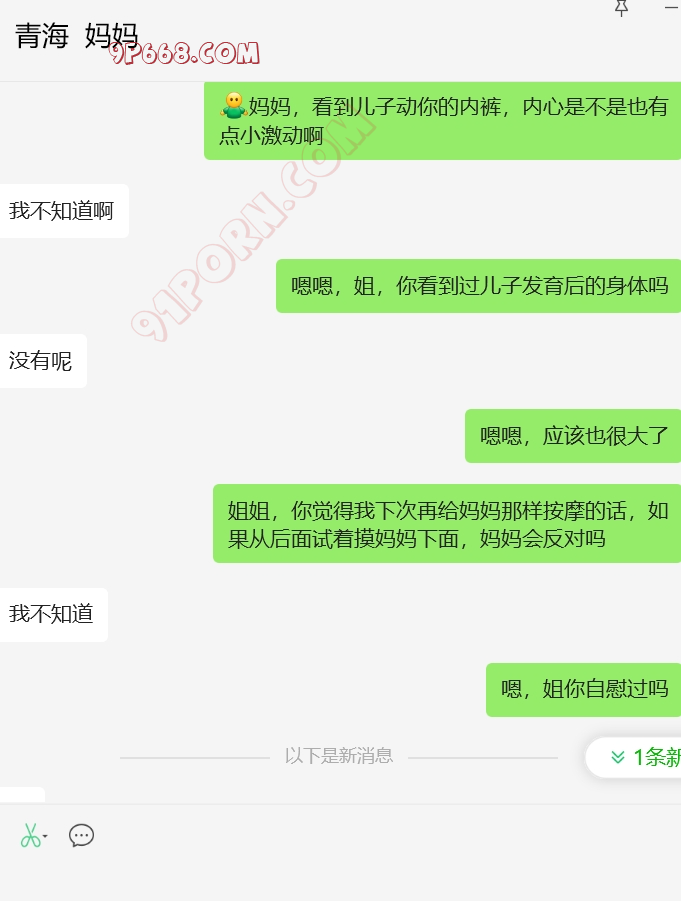 儿子昨天晚上睡着了,今天早晨聊了一会,他也震惊和她妈妈一天就撩骚上了!这个恋母话题确实太拿捏了,聊老女人秘诀!有时候对年轻女人也好使,主要是引入性话题。还需要再验证一下母子关系!早晨让儿子和妈妈聊会天,截图聊天记录。不过说实在的,这种聊天记录也不太好验证,除非妈妈哪天跟我语音或者视频了!