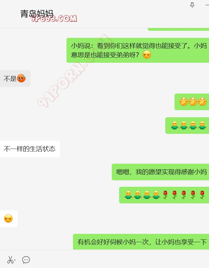 哈哈,青岛儿子还没成功,那天第二天青岛妈妈见我一面,她来例假了,只在车上给我lu了一会。