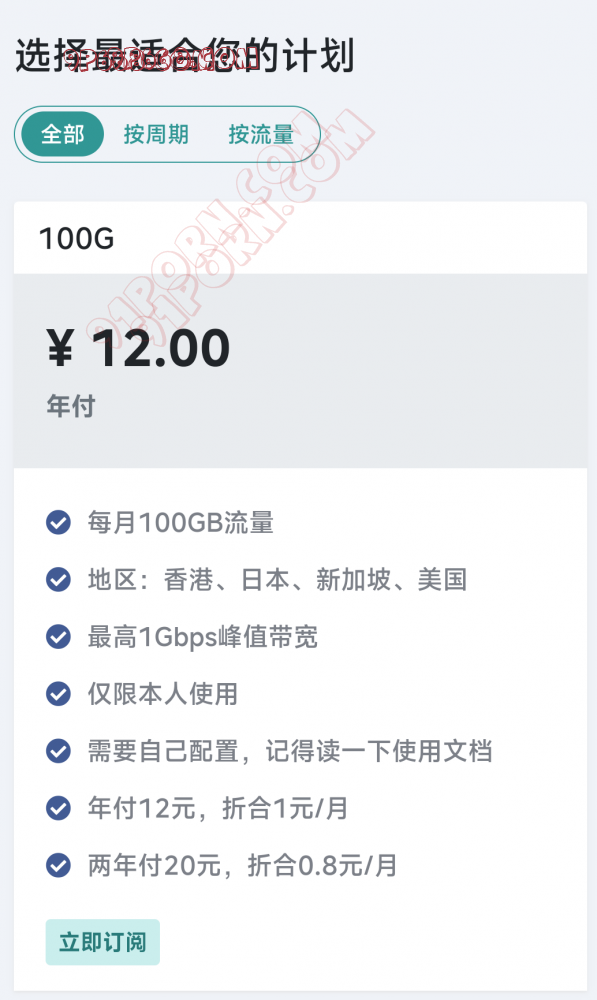 一元机场。每个月1块钱,是的,你没看错,每个月1块钱,100GB流量,20元可以用2年。
