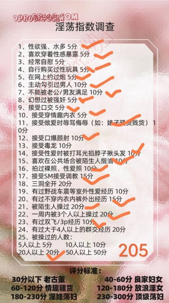 之前也发帖过老婆评分205