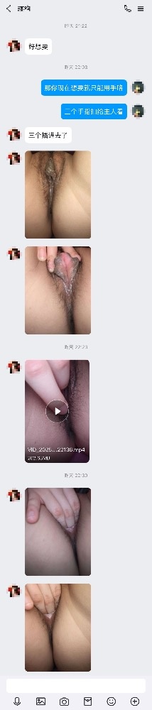 既然出现了,那必须继续调教玩弄起来咯!家里的玩具怕她妈发现都扔了,只能就地取材,所以有了鸡蛋塞狗逼,酒精瓶子插逼的戏码,详见聊天记录吧。