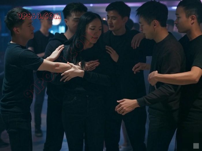 药效很快发作,骚妻感觉一股热流窜遍全身,脑子开始发飘。她跟着节奏扭动起来。她的舞姿越来越放肆,胸部随着动作晃动。一群男人围了过来,吹着口哨,贴着她热舞。男人C——一个满脸胡茬、眼神透着野性的家伙——从后面紧紧搂住骚妻的腰,和她贴身跳了很久。他的手在她身上游走,隔着衣服揉捏她的胸部,胯部顶着她的臀部,随着音乐节奏一下下撞击。骚妻意识模糊,身体却迎合着他的动作,周围的男人起哄声不断。