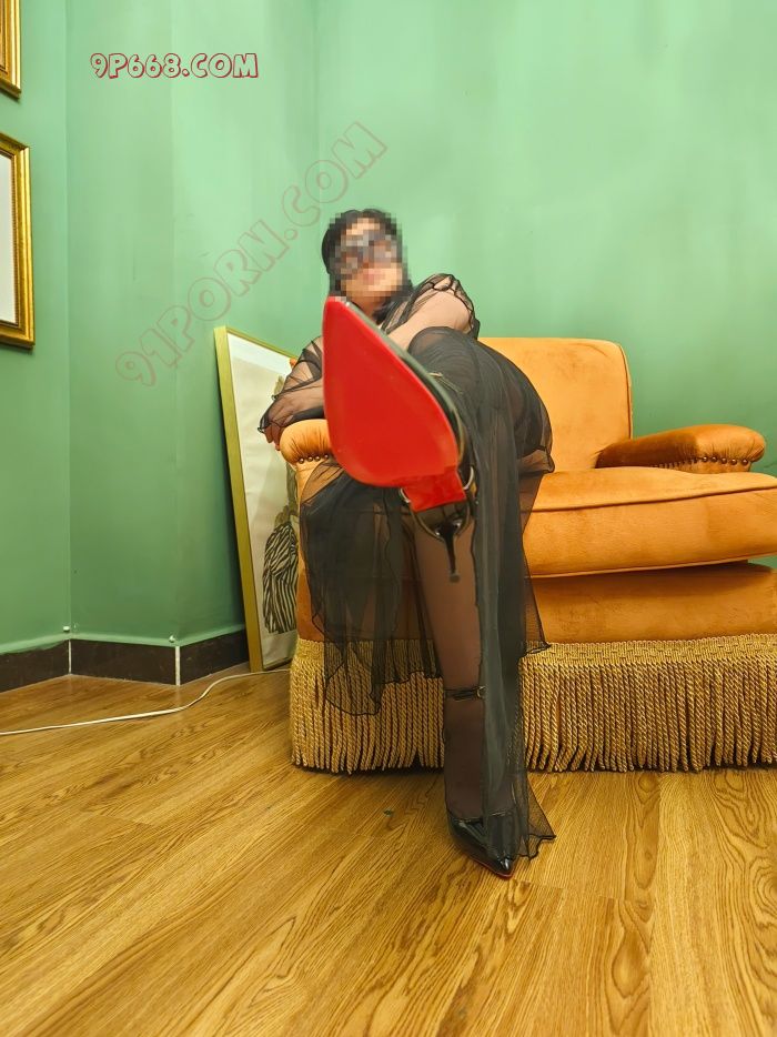 这次拍摄在暗调主题酒店,黑色薄纱长袍半遮半掩,开档内裤若隐若现,高跟鞋尖挑起欲望的权杖。
