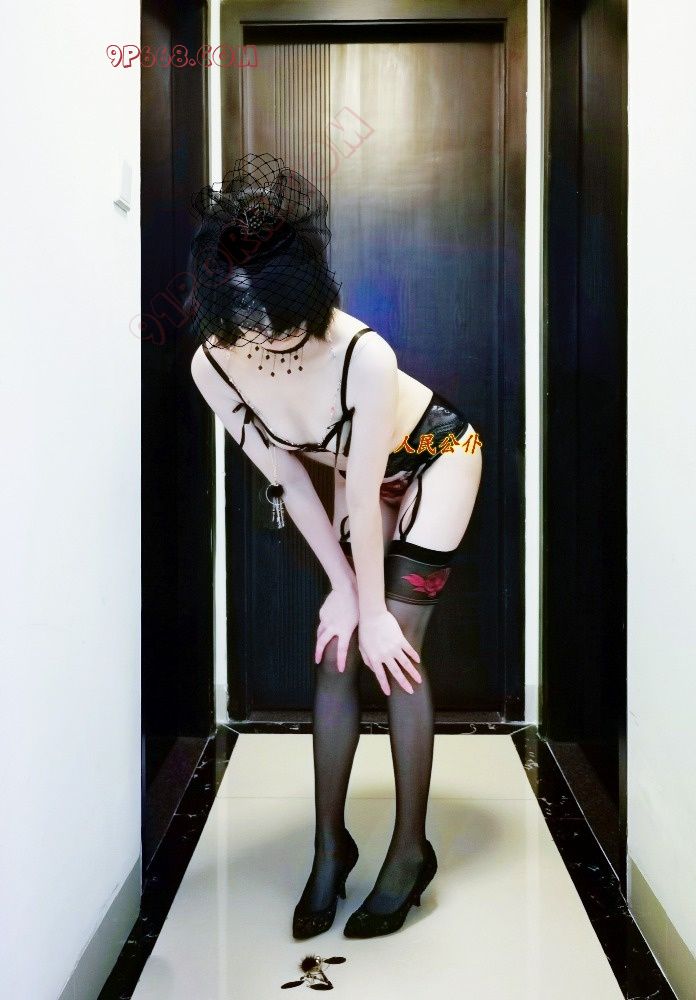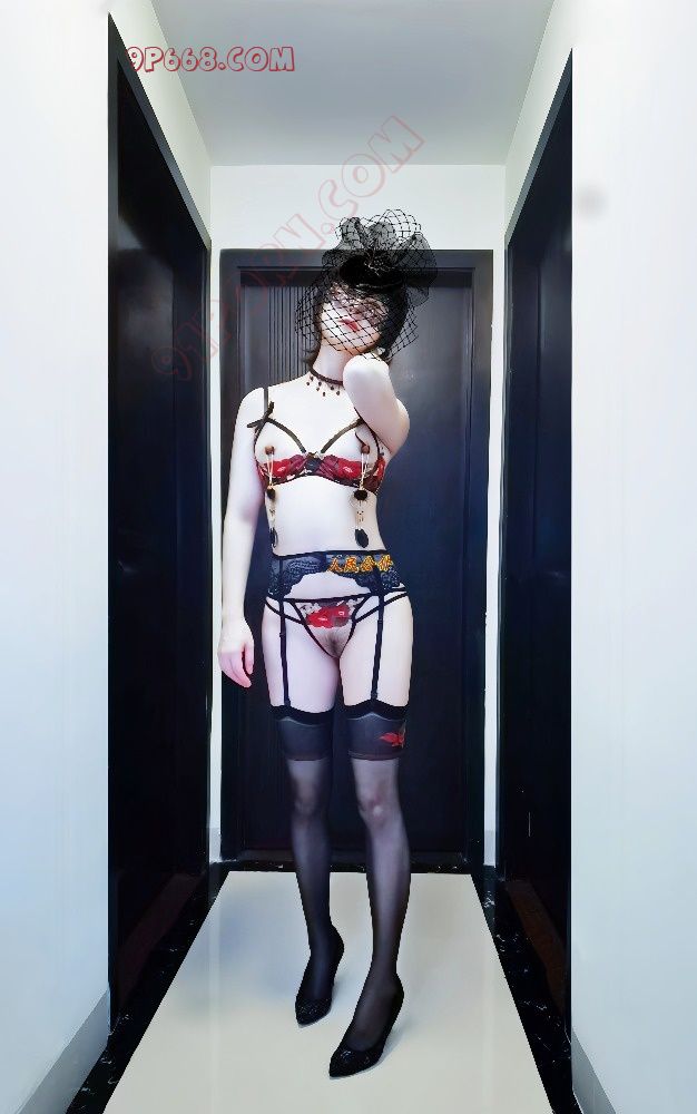 这次是蕾丝高跟鞋+胸托+胸链+开档丁字裤+吊带黑丝长筒袜+乳夹的装扮