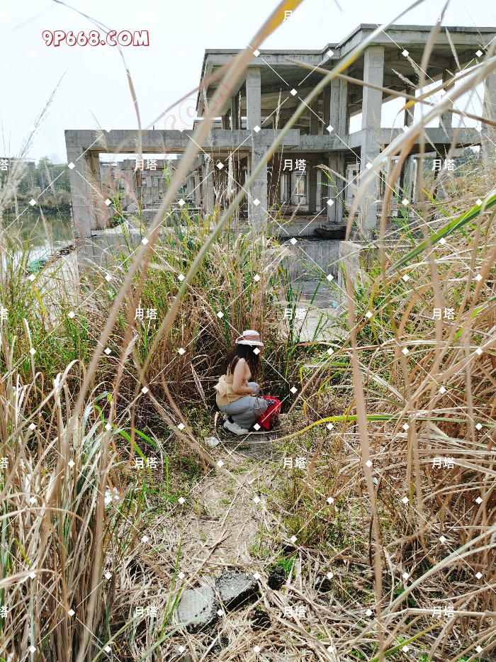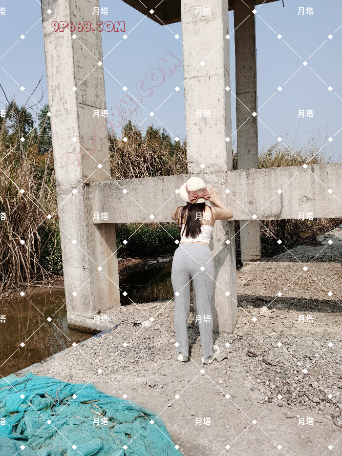 工地上基本的框架结构搭好以后就停工了,看样子比较像厂房,前面有个比较大的水塘。绕了大半圈只有一条小道进去,周围什么都没有,这种地方大概只有钓鱼佬才会去。废弃的工地硬朗的混凝土很适合拍照,老婆穿的很随意并不想拍。耐不住我的劝说还是同意了,正在我们打算开始的时候,老婆突然发现水塘对面的角落竟然有个钓鱼佬。最后只能在另一边拍了些,我预想的好多拍摄姿势也用不了,真是郁闷的很。不甘心浪费机会,最后在钓鱼佬的注视下,很巧妙的利用几个楼梯遮挡拍了段露出的视频。我们很少拍视频,没想到老婆的表现还真不错。