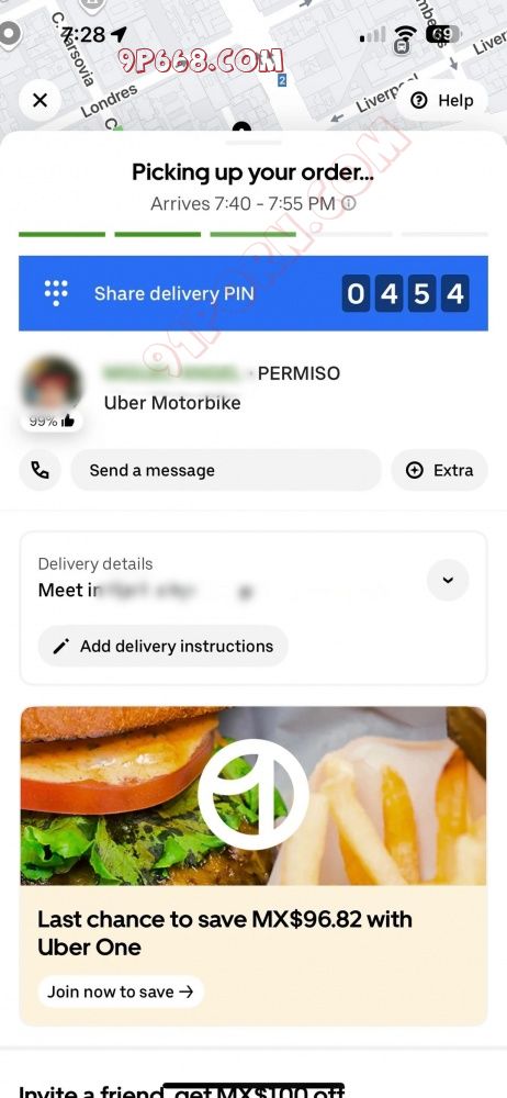晚 7:28点的外卖,预计15分钟内到达。