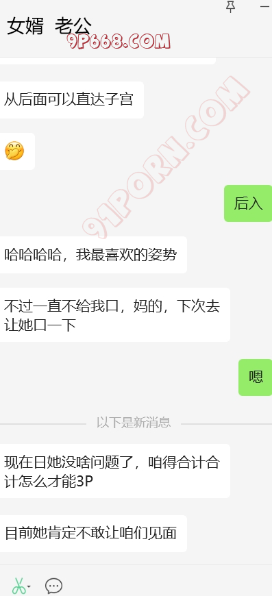 大功告成!!!!女婿很给力,岳母算是比较配合,跟我考虑的结局差不多,拿聊天记录给她看,然后威胁要伤害我,和岳母做了两次,第二次很配合。以后女婿的好日子就来临了。
