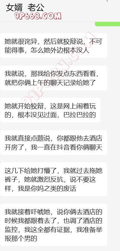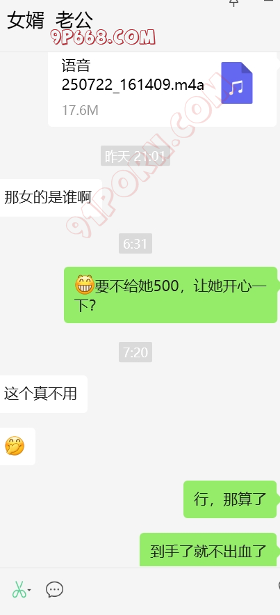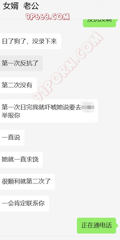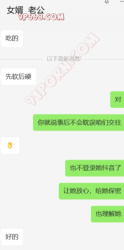 完事女婿走后,岳母立马给我打来微信电话,告诫我不要再在抖音发信息了,说被人登录了,但是就是不说是谁,我也装傻。岳母电话中情绪特别稳定,也于我之前给她灌输女婿岳母的观点有点关系。