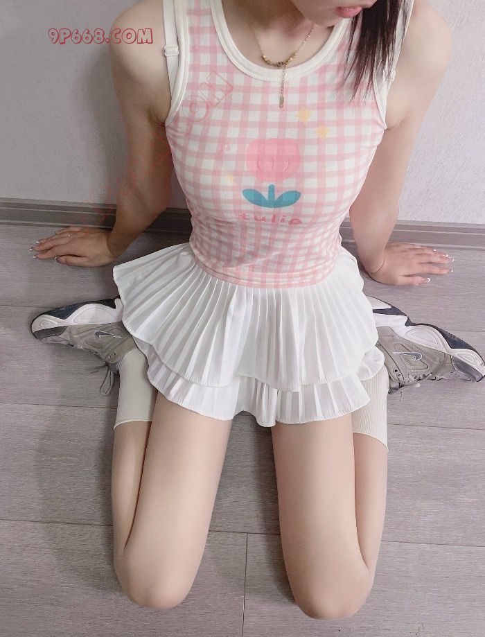 穿了一个粉色上衣白色小裙子