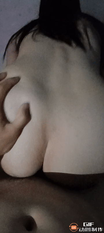 动图精彩啊,奶子很白很大,女上位插得很深。