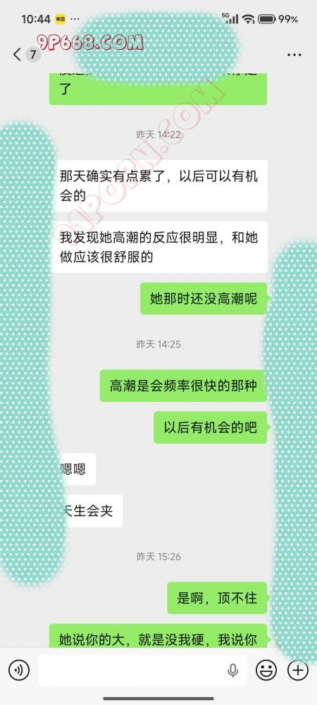 天塌了,兄弟们,这两天跟老婆做爱,给她看视频,结果她爽完,就把视频给删了,第一次记录啊,除了帖子上这几张截图,没了,太可惜了。 接着之前说,我刚射完,单男就先走了,老婆躺在那里,满脸红扑扑的,就是不说话,我哄她,她也不理我,接着她就问我是不是早就计划好了,我跟她说,有想过,但是也是正儿八经给你按按摩,我都说了,可以随时叫停,看你挺爽的,就没停,边说我边摸老婆,没一会,就又有反应了,接着我跟她说,他按的你爽不爽,她一直回忆之前的细节,说感觉按摩并不是很专业,好像故意挑逗她,不过确实挺爽的,还说人家鸡巴比我大,遗憾的是没我硬,不然肯定更爽,她还一直问我,别人在我面前草她,我生不生气,我说只要你爽我就很爽,她说爽确实挺爽,更多的是刺激的爽,除了我,第一个亲她下面的,她对亲她下面的人很有好感,甚至一度催促我再联系联系人家,可惜单男那天走得早,我刚打开手机,就看到单男说已经回去了,开车在路上了,不然就能再来一次了 她的小逼应该算比较紧致的,水多,而且爽了也会夹,紧紧箍着鸡巴,我有时候会受不了,没多久就射了,就这一点我还跟单男聊过,小杜之前以为她高潮了,其实不是,她爽了下面就会自动夹,高潮下面会频率很快的夹,那才爽,可惜现在我很难给她草高潮,大多时候都是先摸或者给她亲高潮,她高潮以后会特别希望我插进去,通常高潮后她都会拉着我鸡巴往里塞 这是这两天跟小杜的聊天4744324 4744325 这两天给我发短消息人太多,回复不过来,我还是把q签名,放出来一段时间, 加我一定要发自己照片,武器照片,然后介绍下自己,有没有活动经历不重要,真诚就好,我们也没啥经验, 还有不要发闪图,你照片分开就好了,发吊不露脸,露脸就正常照片,我能拿来干啥,发闪图我总不能看照片时把老婆叫过来一起看吧,这都要我们私下先计划好,介绍尽量详细些,接不接受舔小逼之类的,事先说好,还有大家都要工作,我可能有时候来不及回复,但是看到了就会恢复的 ,就这吧