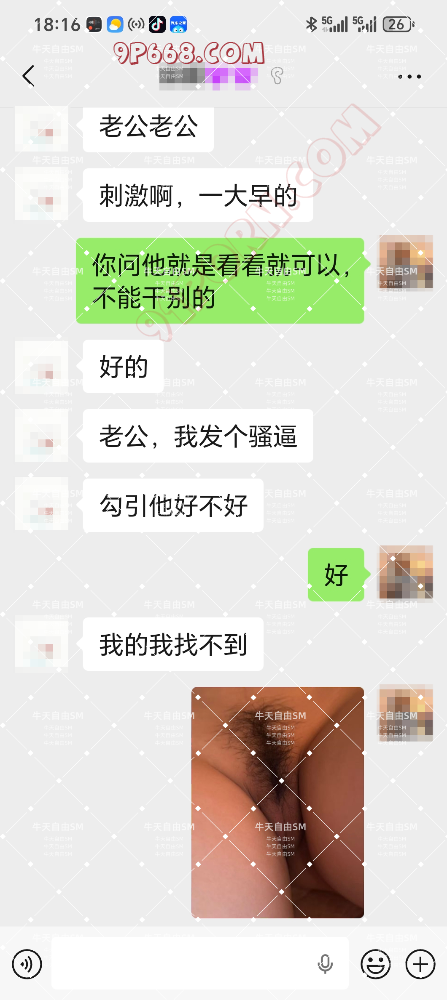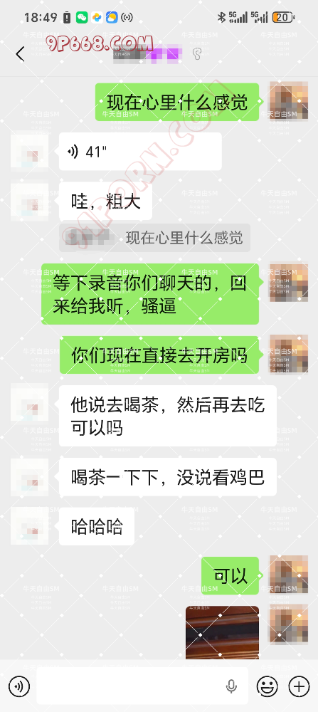 之后老婆就夸照片里面的男的鸡巴很大,这个单男就和老婆说,图片的男的鸡巴其实很小,他自己的鸡巴更加粗大。然后就勾引我老婆,要当面给我老婆看,就只是看看,不做也可以。然后就一步步的,老婆被约去酒店开房了。剩下的过程就看截图吧。这次总的来说,感觉很刺激,老婆第一次和单男去开房,整个过程对我来说,很煎熬,见完单男后,我们迫不及待的想要见到彼此,然后见了面就是疯狂的做爱了,确实能刺激到,增加性爱的激情。