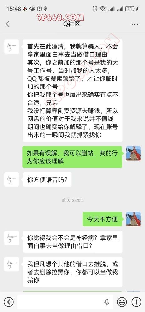 他说我对他造成了很大的影响,好多人加他说他是骗子。还嫌我发帖说他是骗子。除了骗子我实在是不知道用什么称呼了,对此感到抱歉。